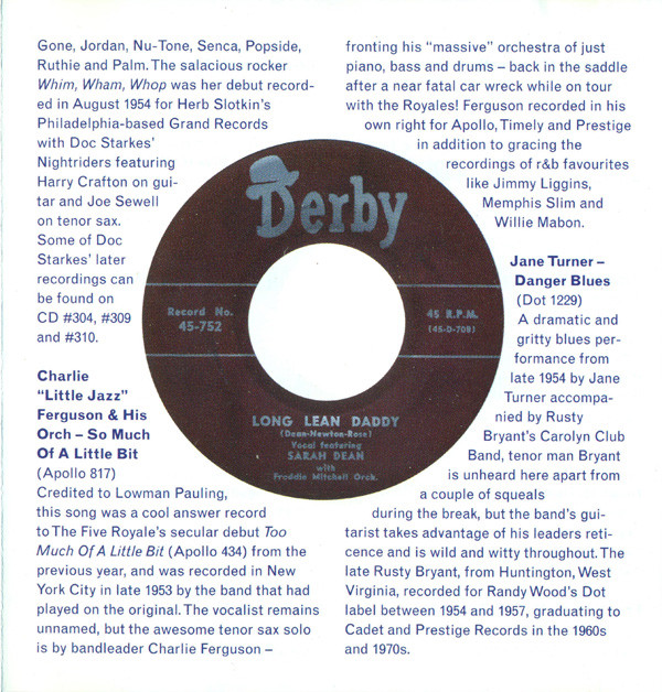 Jane Turner zierte 1954 die Plattenseite "Danger Blues" mit Rusty Bryant's