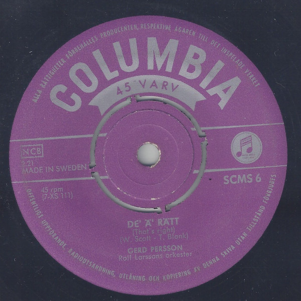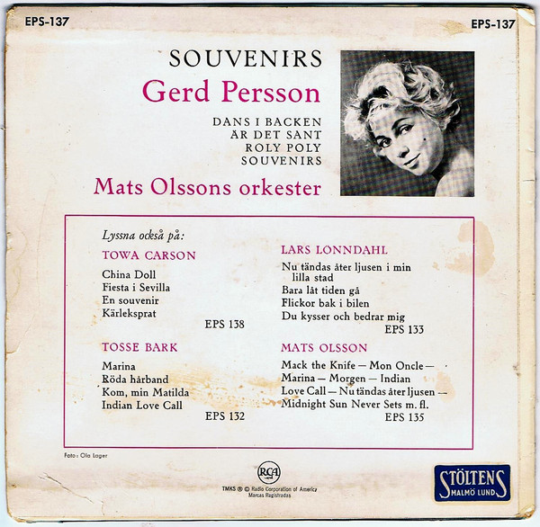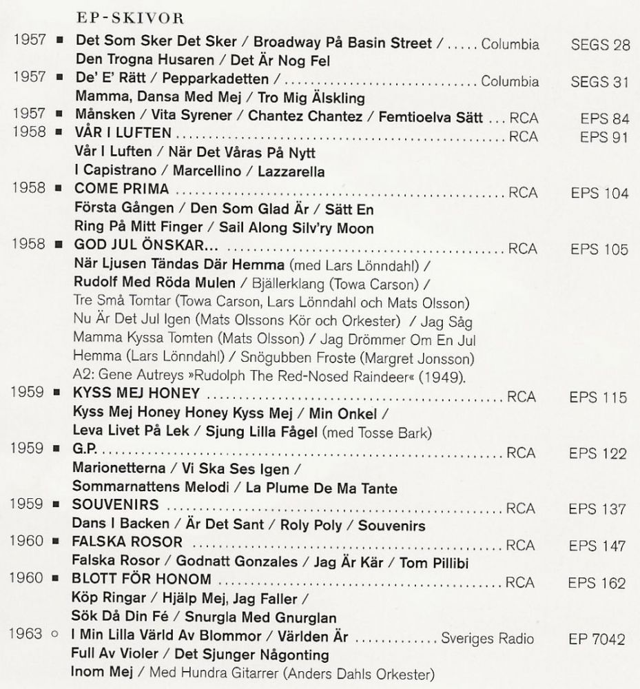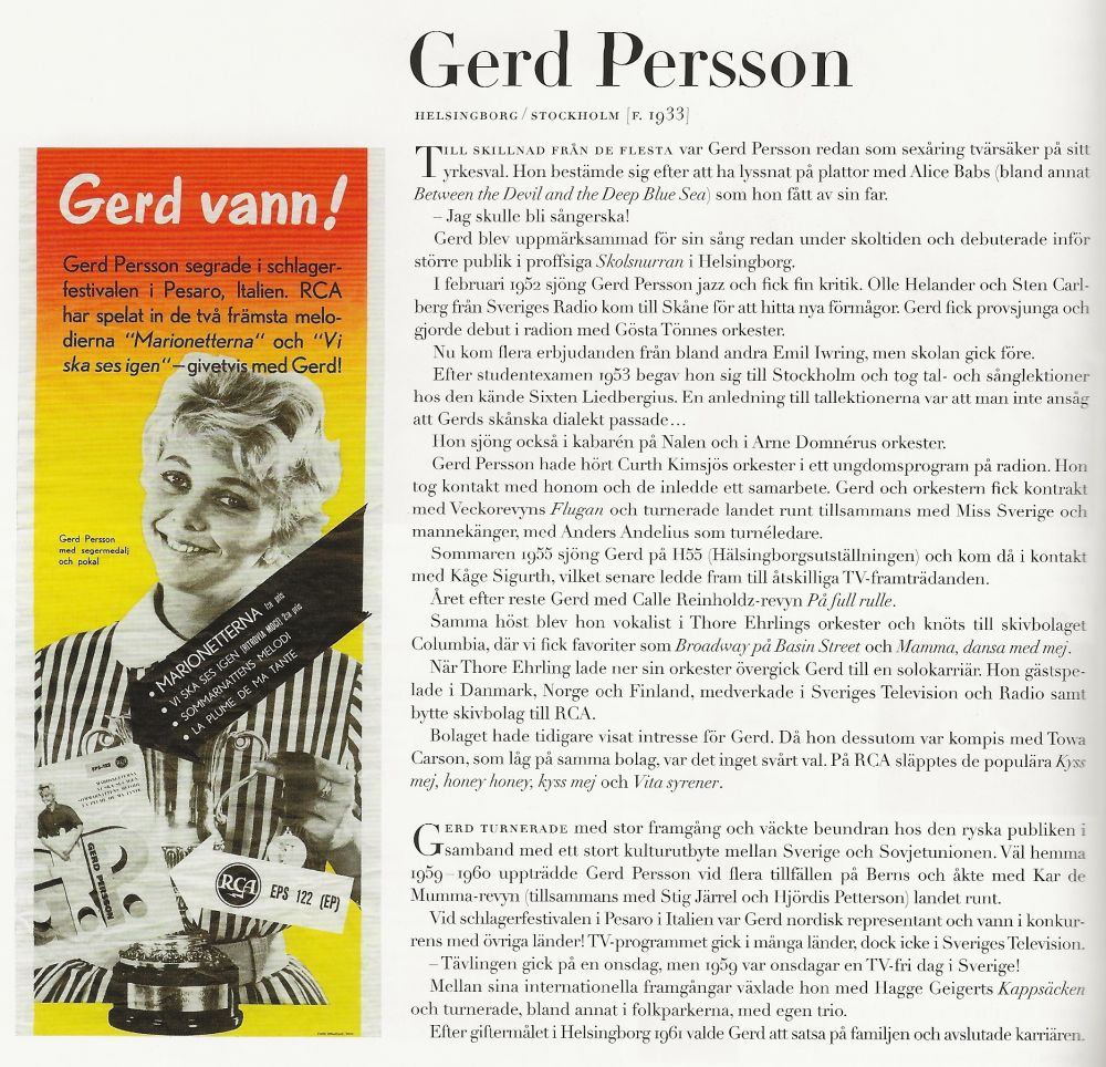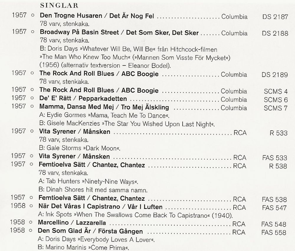 mit RCA in Schweden folgte. Aktiv blieb sie bis in die 60er Jahre.