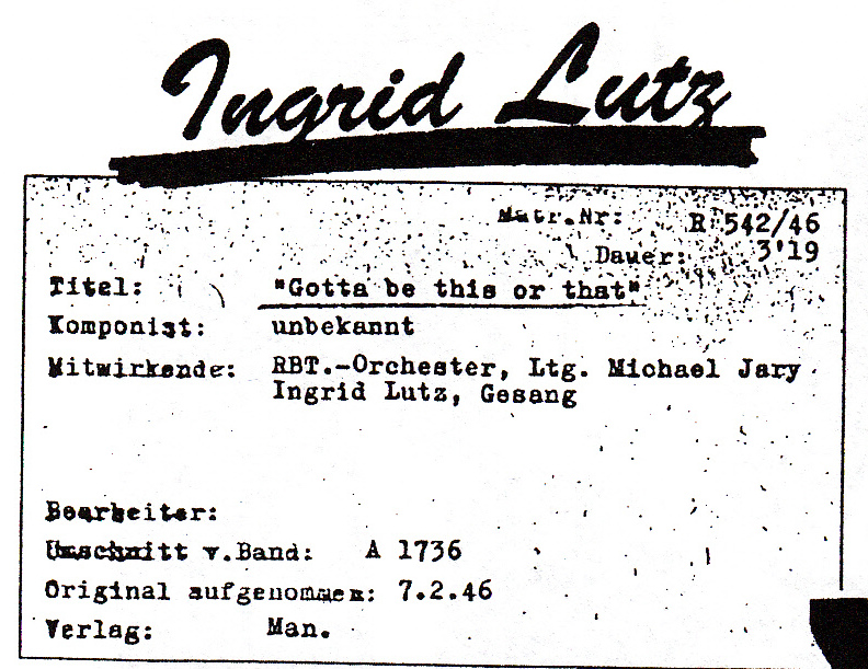 In den ganz frühen 50er Jahren war INGRID LUTZ, teilweise mit dem GELLER-Quintett,