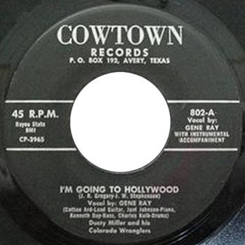 06 60....802-A....Vocal by: GENE RAY (Luther Ard-Lead Guitar, Joel Johnson-Piano, Kenneth Day-Bass, Charles Kold-Drums) Dusty Miller and his Colorado Wranglers..I'm Going To Hollywood (CP 3965)/-B….Vocal by: FAYE PAYETTE Dusty Miller and his Colorado Wranglers (Dusty Miller is Disc Jockey at W.C.S.S.)..Three Thousand Miles (CP 3966)
