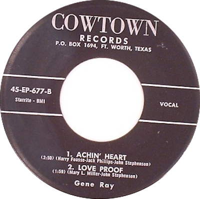Obwohl Gene Ray bei COWTOWN viermal auf Single bzw. EP aufschien, konnte ich über ihn bisher keine biographischen Daten finden.