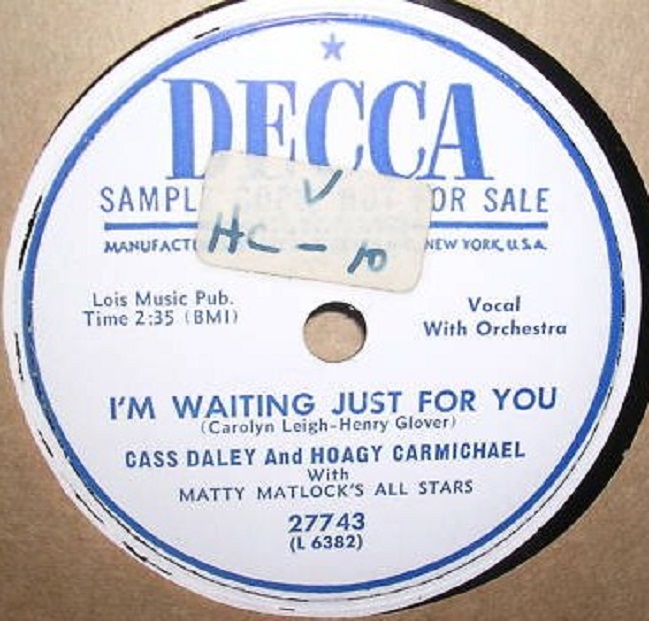 08 51....9-27743....CASS DALEY And HOAGY CARMICHAEL With MATTY MATLOCK'S ALL STARS..I'm Waiting Just For You (45-L 6382)/HOAGY CARMICHAEL And CASS DALEY With MATTY MATLOCK'S ALL STARS And Four Hits And A Miss..Woman Is A Five Letter Word (45-L 6383)