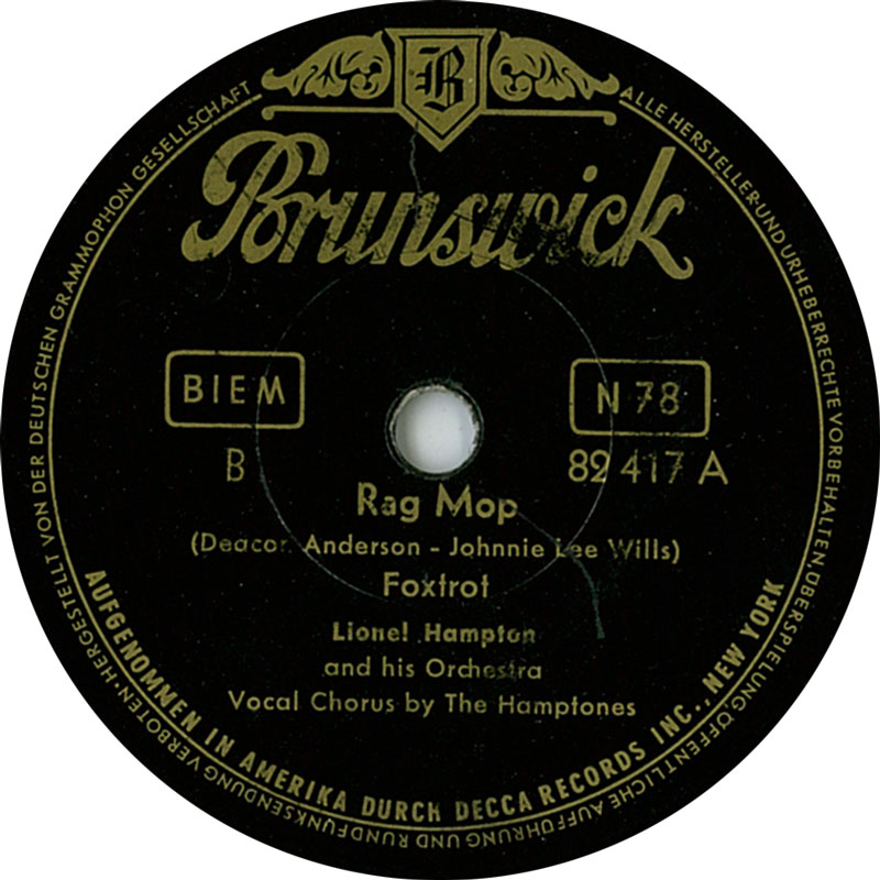 Meine Plattensammlung enthält drei "Rag Mop"-Versionen, darunter auch jene von Lionel Hampton. Allerdings nicht auf der US DECCA, sondern auf der deutschen BRUNSWICK die insoferne hochinteressant ist, weil es "Baby You're Great", die B-Seite dieser BRUNSWICK-Single, in den USA garnicht gegeben hat. Da ich keine Hör-Vergleiche durchführen konnte kann ich daher auch nicht ausschließen, dass es sich bei der "Rag Mop"-Aufnahme auf der deutschen BRUNSWICK um ein Alternativ-Take handeln könnte, welches in den USA ebenso nicht zu haben war. Nur so ein Gedanke.