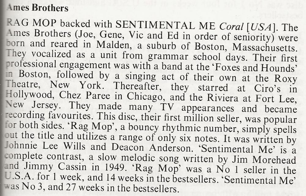 12 49 09 50....9-60140....AMES BROTHERS..Rag Mop (45-75569)/Sentimental Me (45-75570)