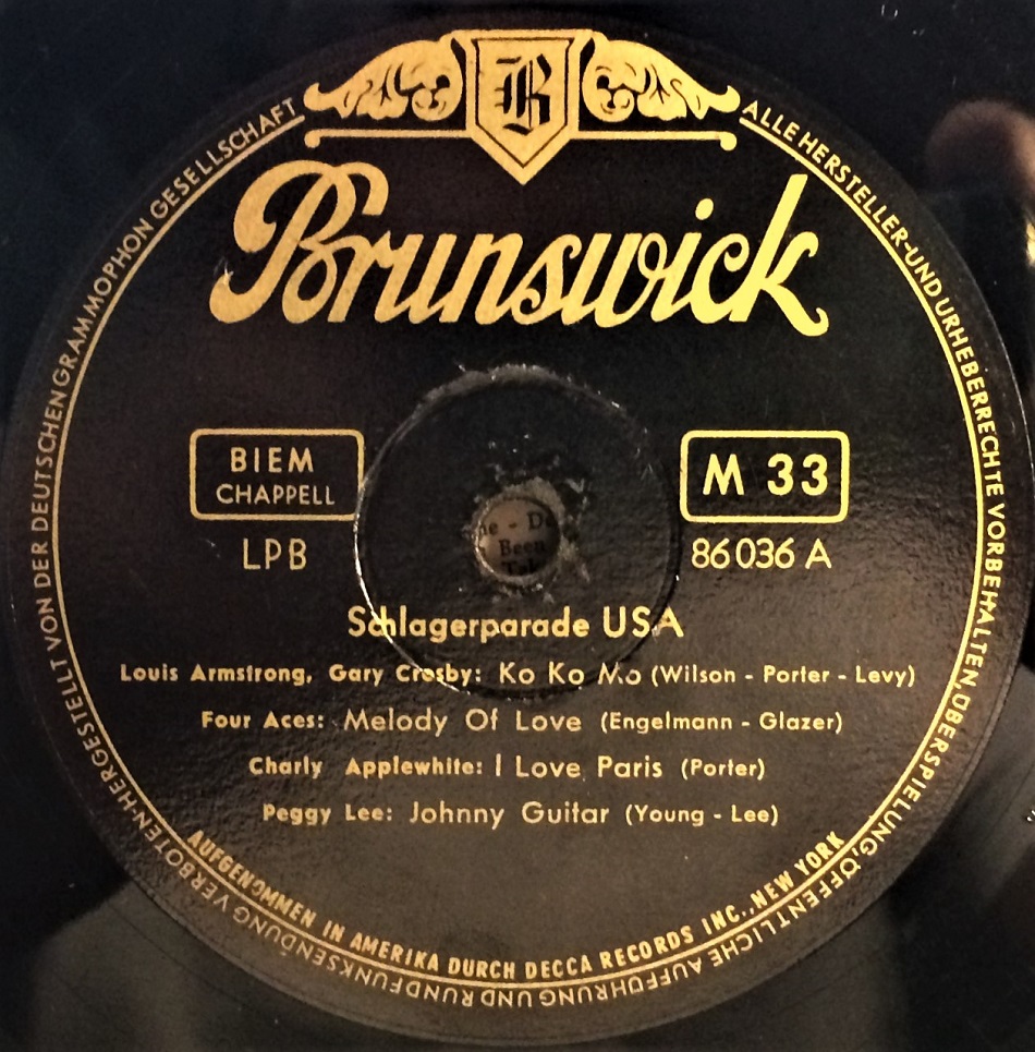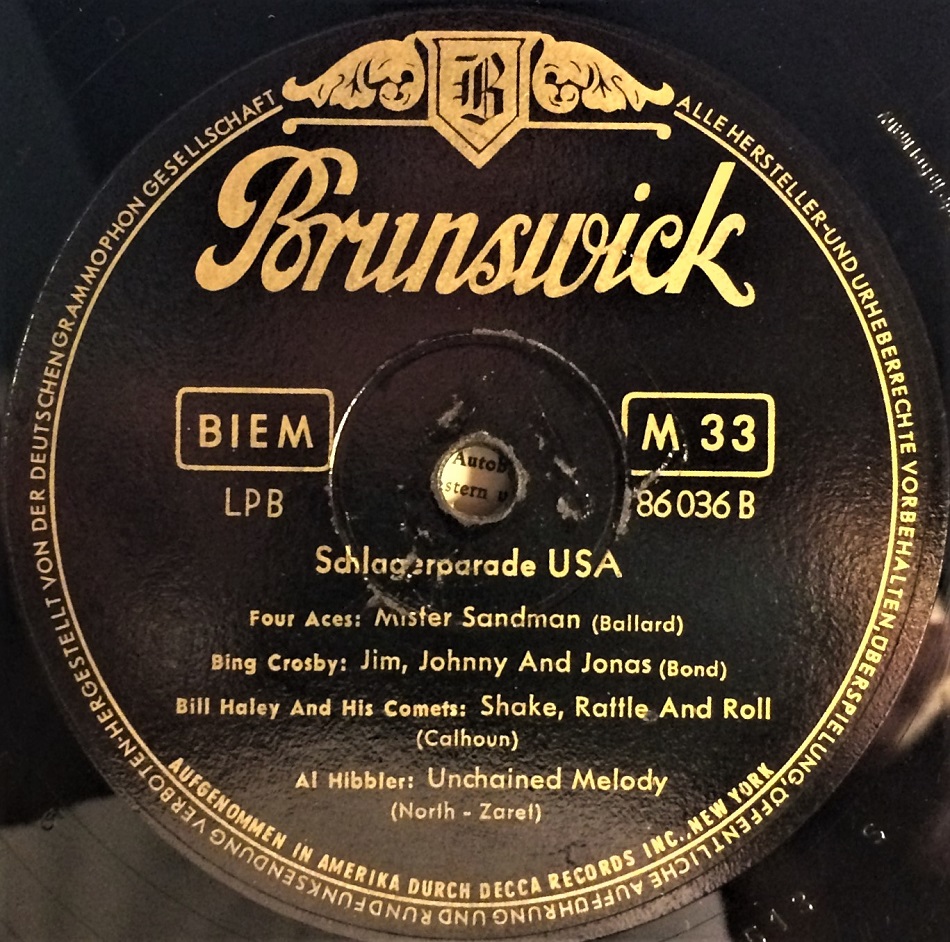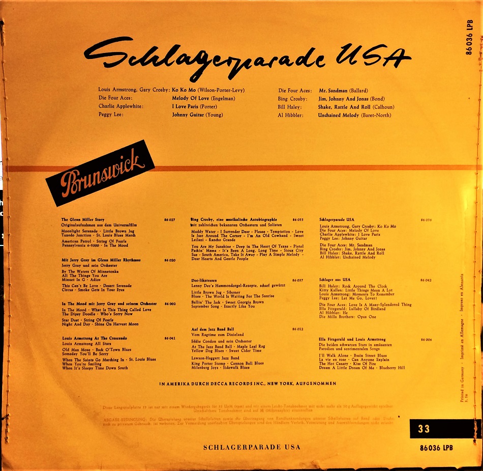 Einfach ein Highlight für meine Sammlung könnte ich ersteigern, eine Schlagerparade USA von Brunswick Deutschland 1956, Nr. der 10 Inch Platte 86036 LPB und das mit abgenähten Cover und noch eines darauf Platte VG++ erhalten, sowas muss man erst mal finden.