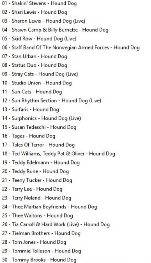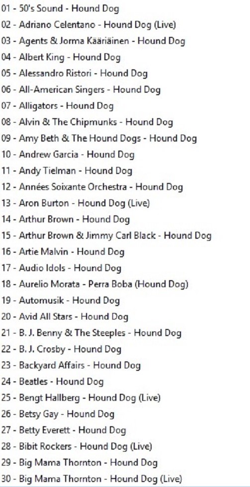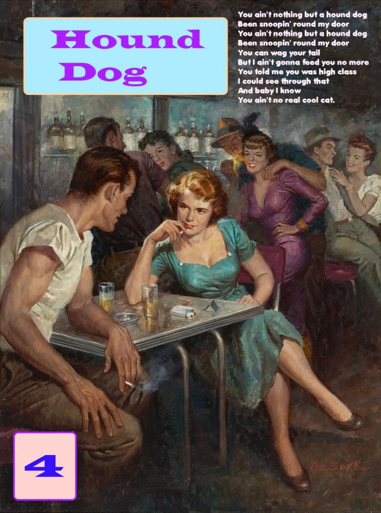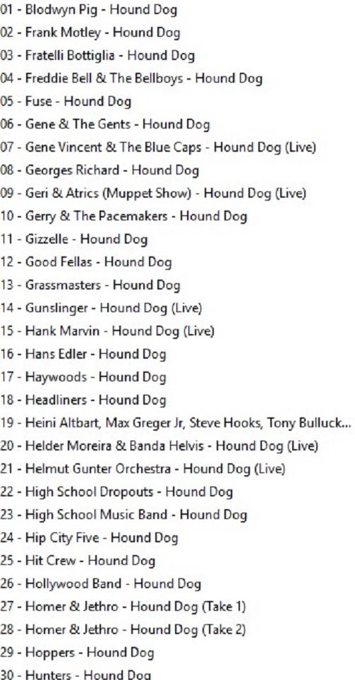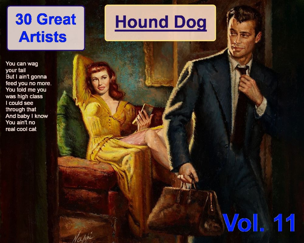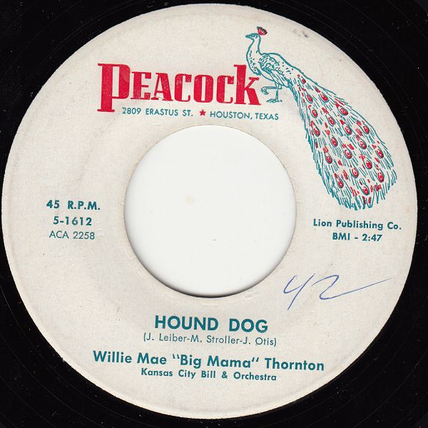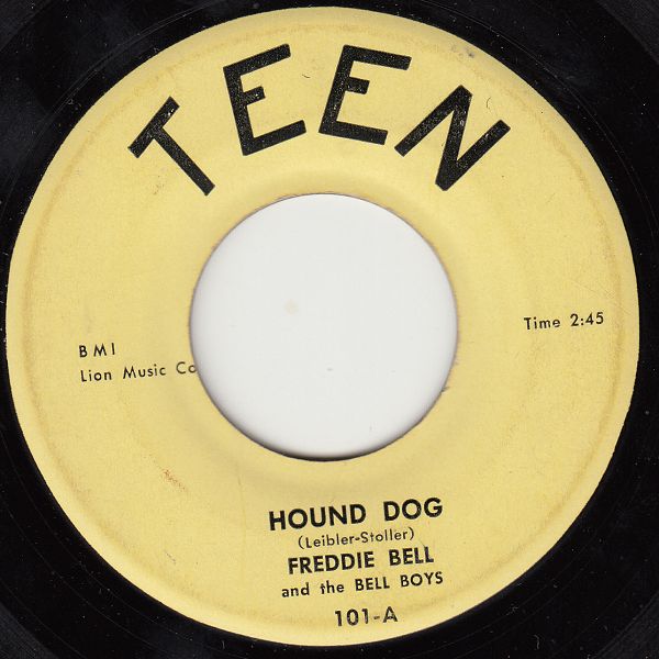 Der Song "Hound Dog" wurde von dem Komponisten-Duo Jerry Leiber und Mike Stoller geschrieben und am 13. August 1952 von Big Mama Thornton in Los Angeles aufgenommen. Johnny Otis produzierte diese Aufnahme und veröffentlichte sie im Februar 1953 auf PEACOCK. Der Produzent Johnny Otis schien eine Zeit lang auf dem Label auch als dritter Autor auf. Erst ab Freddie Bell konnten sich Leiber und Stoller den Label-Platz alleine teilen. Diese Veröffentlichung provozierte sehr schnell Nachahmer mit Parodien und einer Art von Antwort-Songs, die sich selbst oder den Produzenten, wie bei SUN, als Autoren angaben, was zum Teil auch zu Problemen führte.
