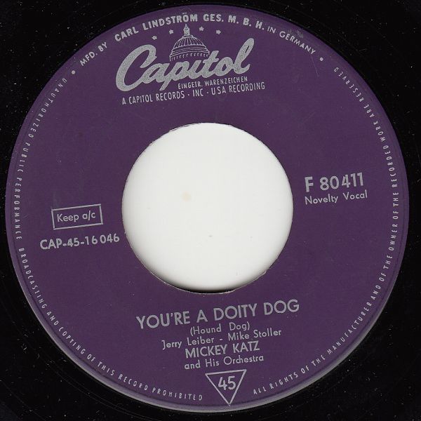 01 57....F3607....MICKEY KATZ and his Orchestra..The Litvak Square Dance (45-16048)/You're A Doity Dog (Hound Dog)(45-16046)