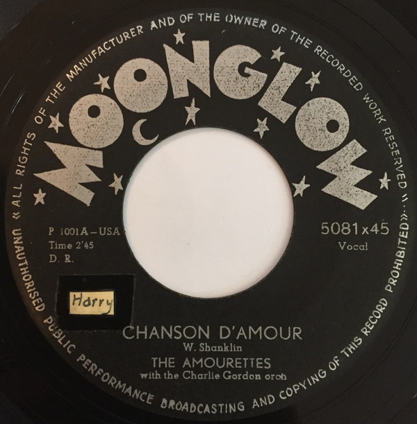 04 58....5081x45....THE AMOURETTES with the Charlie Gorden orch. ..Chanson d'Amour (USA — P 1001 A)/BOBBY HAMILTON with The Amourettes and the Charlie Gorden orch. ..Kewpie Doll (USA — P 1001 B)