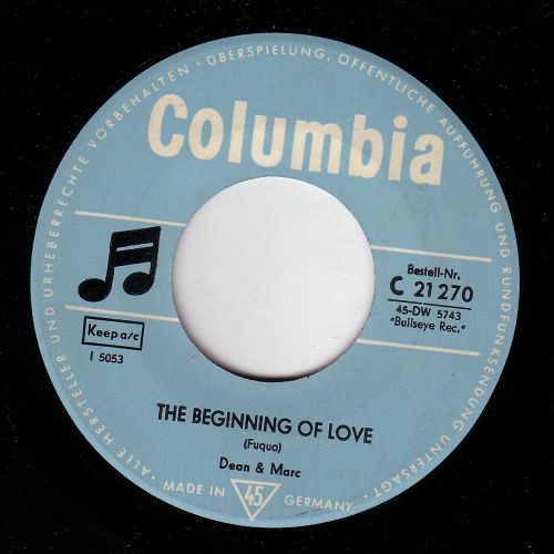 C 21 270 Dean & Marc Cry/The Beginning Of Love (BULLSEYE 1026) #
