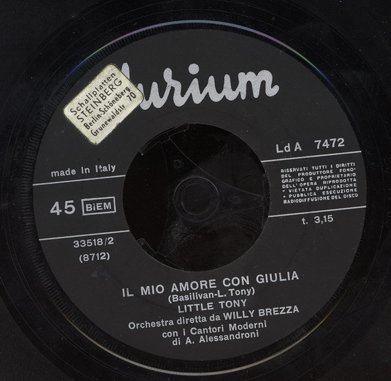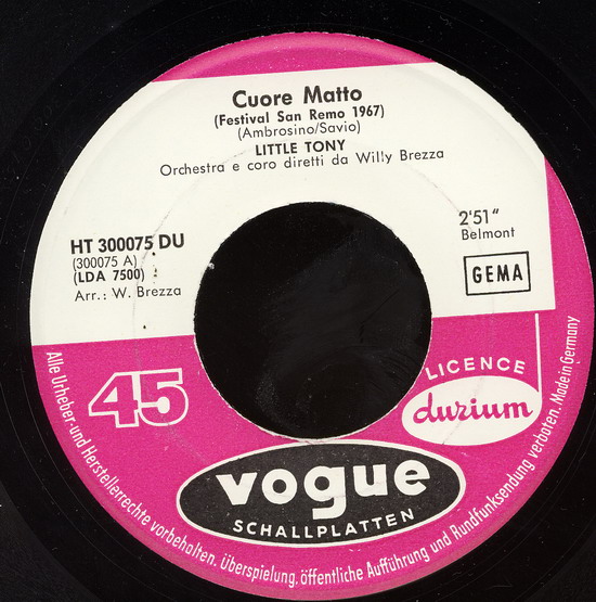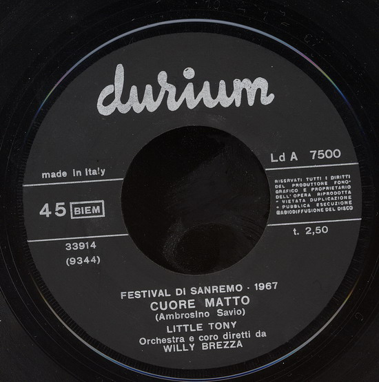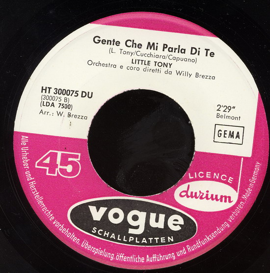 beim San Remo Festival 1964 hatte Little Tony mit "Quando Vedrai La Mia Ragazza" großen Erfolg. Das Lied erschien in Italien auf einer Durium-Single. Davon gibt es auch eine sehr rockige Filmaufnahme und zwar hier: