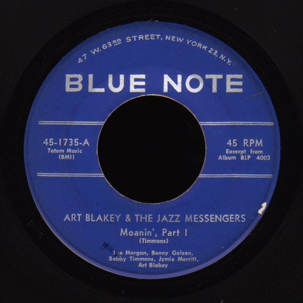 02 59....45-1735-A....ART BLAKEY & THE JAZZ MESSENGERS Lee Morgan, Benny Golson, Bobby Timmons, Jymie Merritt, Art Blakey..Moanin', Part 1/-B….Moanin', Part 2