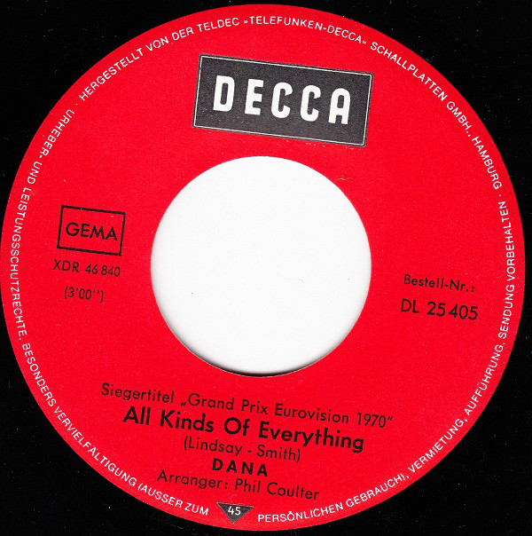 Eurovisionsfestival in Amsterdam mit "All Kinds Of Everything". In den 70er Jahren nahm