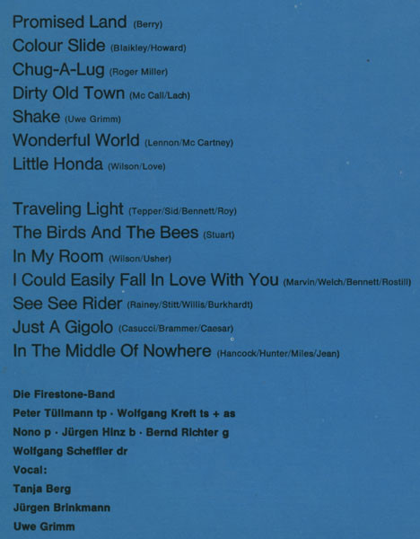 Peter Tüllmann (trumpet), Wolfgang Kreft (tenor saxophone, alto saxophone), Nono (piano),
