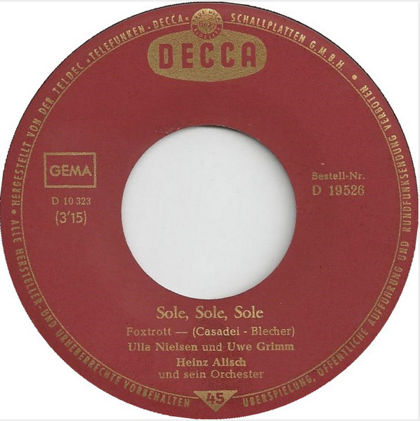Daneben veröffentlichte er eine Decca-Single ("Sole, Sole, Sole") gemeinsam