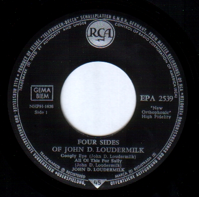 Im Spätherbst 1961 hat Loudermilk seine erste RCA Victor-LP (LPM-2434) veröffentlicht. Darauf war eines meiner Lieblingslieder "Blue Train (Of The Heartbreak Line)". Diesen Titel gabe es leider nicht auf Single (ich spiele nicht gerne LPs obwohl ich eine Menge davon habe). Aber die TELDEC ist mir - natürlich unbewußt - entgegengekommen. Im Frühjahr 1962 wollte sie offensichtlich testen, wie Loudermilk auf das Käufer-Publikum wirkt. Eine LP wäre wahrscheinlich zu teuer gewesen und so entschloß man sich für die Veröffentlichung einer EP die man mit der US-LP-Nummer versah (EAP-2434, siehe Scan). Man verwendete sogar das LP-Coverbild und den gleichen Text von der Rückseite der LP wo lediglich das Wort "Album" durch das Wort "Record" ersetzt wurde. So akkurat war die TELDEC. Zwei weitere Titel dieser LP veröffentlichte man zur Sicherheit noch zusätzlich als Single in der bekannten 9000er-Serie (47-9381, siehe Scan). Offensichtlich fiel dieser Test positiv aus da im Herbst 1962 bereits die erste Single erschien die mit der amerikanischen ident war (47-8054, siehe Scan). Danach folgte noch 1962 47-8101 und Früjahr 1963 47-8154 und noch weitere. Die "Blue Train-Single" (47-9500) kam dann erst weit nach 1962 und daher für mich viel zu spät raus, aber ich brauchte sie ja nicht mehr