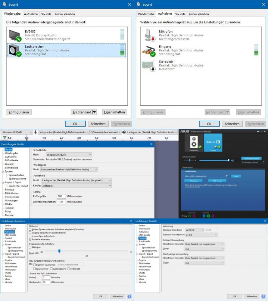 Das Problem welches ich jetzt plötzllich habe ist, dass der Sound der jetzt aus dem Lautsprecher kommt stark verzerrt ist und auch teileweise klingt als käme die Musik von Unterwaaser (kann es nicht anders beschreiben) ! Aber alles was ein- und abzustellen ist, hqbe ich auch bereits ausprobiert. Auch habe ich den Audiostecker in den Audioeingang gesteckt (welches für mich auch logischer erscheint). Da "schlägt" der Ton auch aus und ich kann ihn auch hierbei sauber aufnehmen (Magix Cleaning Lab) aber ich höre nur kein Ton dabei ! Habe auch noch Stereomix zur Verfügung, aber wenn ich das auswähle komt nur ein starkes und sehr unangenehmes "quitschendes" Geräusch aus dem Lautsprechern, dass bis in die Zähne geht !