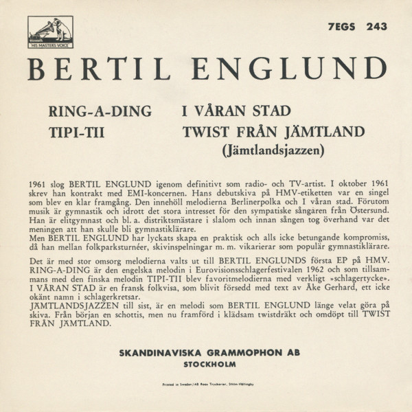 Am 22. Mai 1936 wurde BERTIL ENGLUND in Östersund, Schweden, geboren.