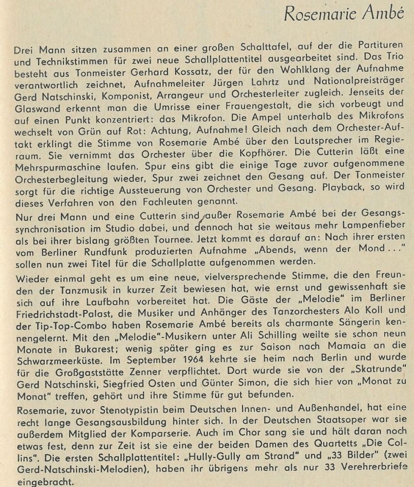 ROSEMARIE AMBÉ war ab Mitte der 60er Jahre auf AMIGA-Schallplatten aktiv.