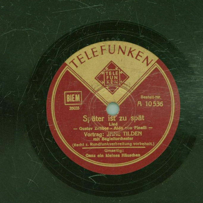 Jane Tilden kann man zwar schwer als Plattenstar bezeichnen, aber trotzdem fand ich von ihr eine Schellack im Netz.