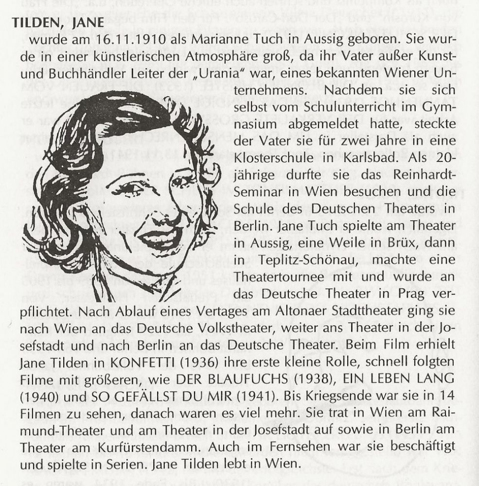 Die Schauspielerin Jane Tilden wurde am 16. Novemeber 1910 in Aussig, Österreich-Ungarn, heute