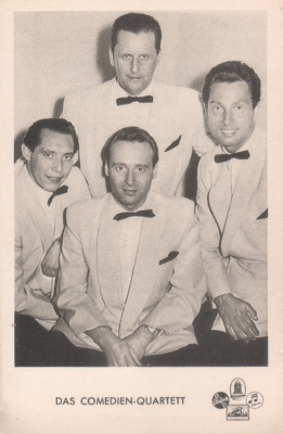 Der Bariton Herbert Imlau hate bereits mehrere Gesangsgruppen hinter sich, als er Ende 1945 das Comedien-Quartett mit Alexander Kutterla (Alessandro Conti) als erstem Tenor, Kurt Stephan als zweitem Tenor , sowie Rudolf Bilski als Bass. Ab 1947 waren seine "Mitsänger" Fred Ritter, Bass, Werner Schliebietz und Karl-Heinz Nowak. Vermutlich gab es im Laufe der Zeit noch weitere personelle Änderungen, wie beispielsweise Werner Preuß und andere. Das für mich am interessantesten ist der Umstand, dass dieses Quartett nicht nur mit dem eigenen Namen, sondern auch mit einer Fülle von Pseudonymen Platten-Aufnahmen einspielte.