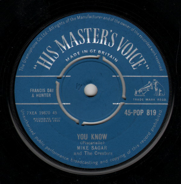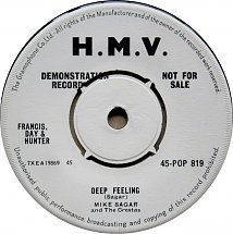 12 60....45-POP 819.... MIKE SAGAR and The Cresters..Deep Feeling (7XEA 19869)/You Know (7XEA 19870)