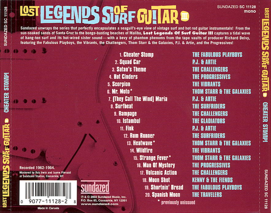 Various Artists CD “Lost legends of Surf Guitar III”, Sundazed SC 11128 von 2003 enthält beide Titel (Track 4 Hot Cinders, track 16