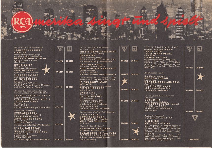 Unser Mitglied Jans sucht jenen Prospekt, mit dem die TELDEC die Aufnahme der Schallplattenmarke RCA in ihr Programm angekündigt hat. Vermutlich meint er jenen, welchen ich in meiner Sammlung habe. Ich nehme daher die Gelegenheit wahr, diesen Prospekt vom Herbst 1956 gescannt dem Forum zur Verfügung zu stellen.