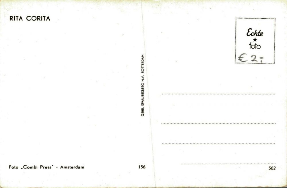 In Castricum, in der Nähe des Strandes, kaufte sie von den Tantiemen ein Haus, in das sie 1959 mit ihrer Familie zog. 1962 nahm sie mit dem Lied Carnaval am National Song Contest teil und belegte den vierten Platz (von sieben). Die mittlerweile korpulente Rita, gesegnet mit großem komödiantischem Talent, arbeitete auch im Fernsehen und im Film. In den 1960er Jahren trat sie mit Bueno de Mesquita auf und spielte auch die Riesin in Kun Können Sie mir den Weg nach Hameln sagen, Sir? (1972-1973). Corita spielte mit Jenny Arean in Da fällt ein Stern (1963), einem Fernsehmusical von Willy van Hemert, und in den Spielfilmen Geen Panic (1964) und Peter und der fliegende Bus (1976). In den siebziger Jahren war sie auch Jurymitglied des Berend Boudewijn Kwis und Ende der siebziger, Anfang der achtziger Jahre in der Willem Ruisshow.