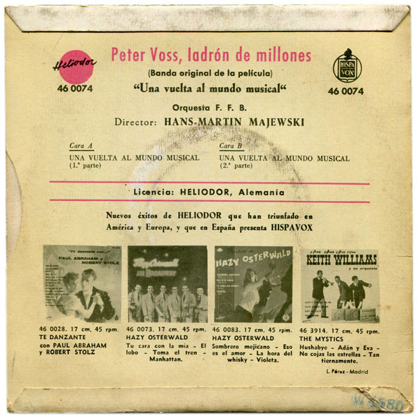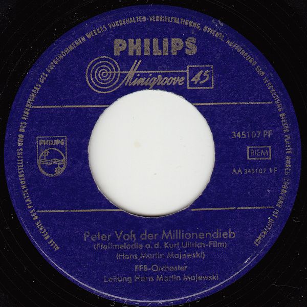 Originalmusiken zeitweise aufgenommen mit der HANS-MARTIN-MAJEWSKI-Studio-Band, Philips (u.a. 345107 "Peter Voss Der Millionendieb"/"Hafen-Blues"-1958),