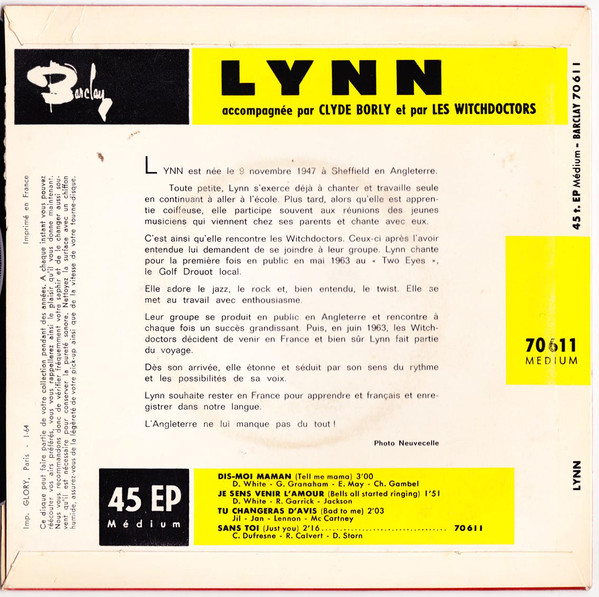 Die LYNN war Anfang 1964 in Frankreich auf Barclay zu hören. U.a.