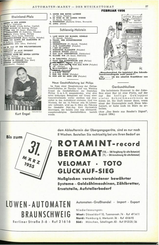 Dort ist erstmals in der Dezember 1954-Ausgabe und dann wieder in der Februar-1955-Ausgabe ein Song ohne Interpretennamen und Bestellnummer platziert gewesen, der angeblich einfach nur "O" heissen soll.
