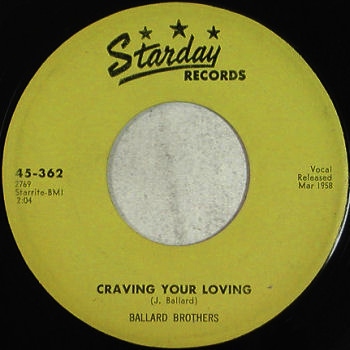 eine Single Starday 362 "Craving Your Love" und "Nobody But You" als BALLARD BROTHERS.