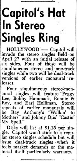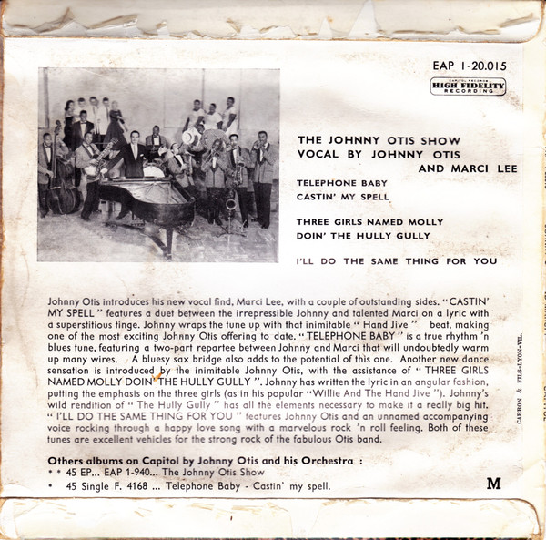 Otis hatte drei weitere (kleinere) Top 100-Hits auf Capitol, darunter “Castin' My Spell“ (gesungen mit Marci Lee), das später zu einem festen Bestandteil des Repertoires vieler britischer Beatgruppen wurde. Sein Flip “Telephone Baby“ war ein Top 10-Hit in Holland. In dem Duett sang Johnny Otis zusammen mit Marcia Lee, “Telephone Baby” heißt ihre Aufnahme, die ich für eine der besten der Otis-Show halte.