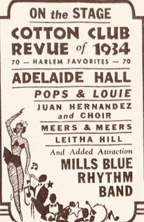 Adelaide Hall spielt die Hauptrolle in der “Cotton Club Revue of 1934“ im Loew's Metropolitan Theatre, Brooklyn, beginnend am 07. September 1934 (Werbung).