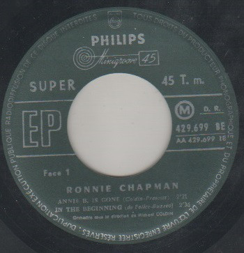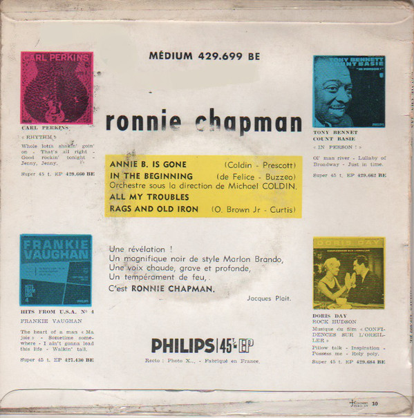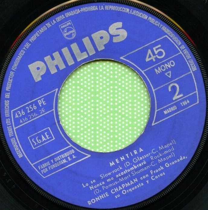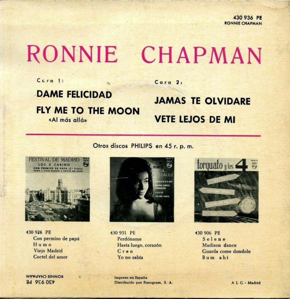 Ich fand im Netz zwar ein Bild von Ronnie Chapman und drei Singles in meinen Aufzeichnungen, wovon ich jetzt eine selbst besitze, aber das war es bereits. Ab 1963 kommt mir alles etwas spanisch vor, verlegte er seinen Wohnsitz vielleicht nach Europa? Es bleiben für mich nur offene Fragen.