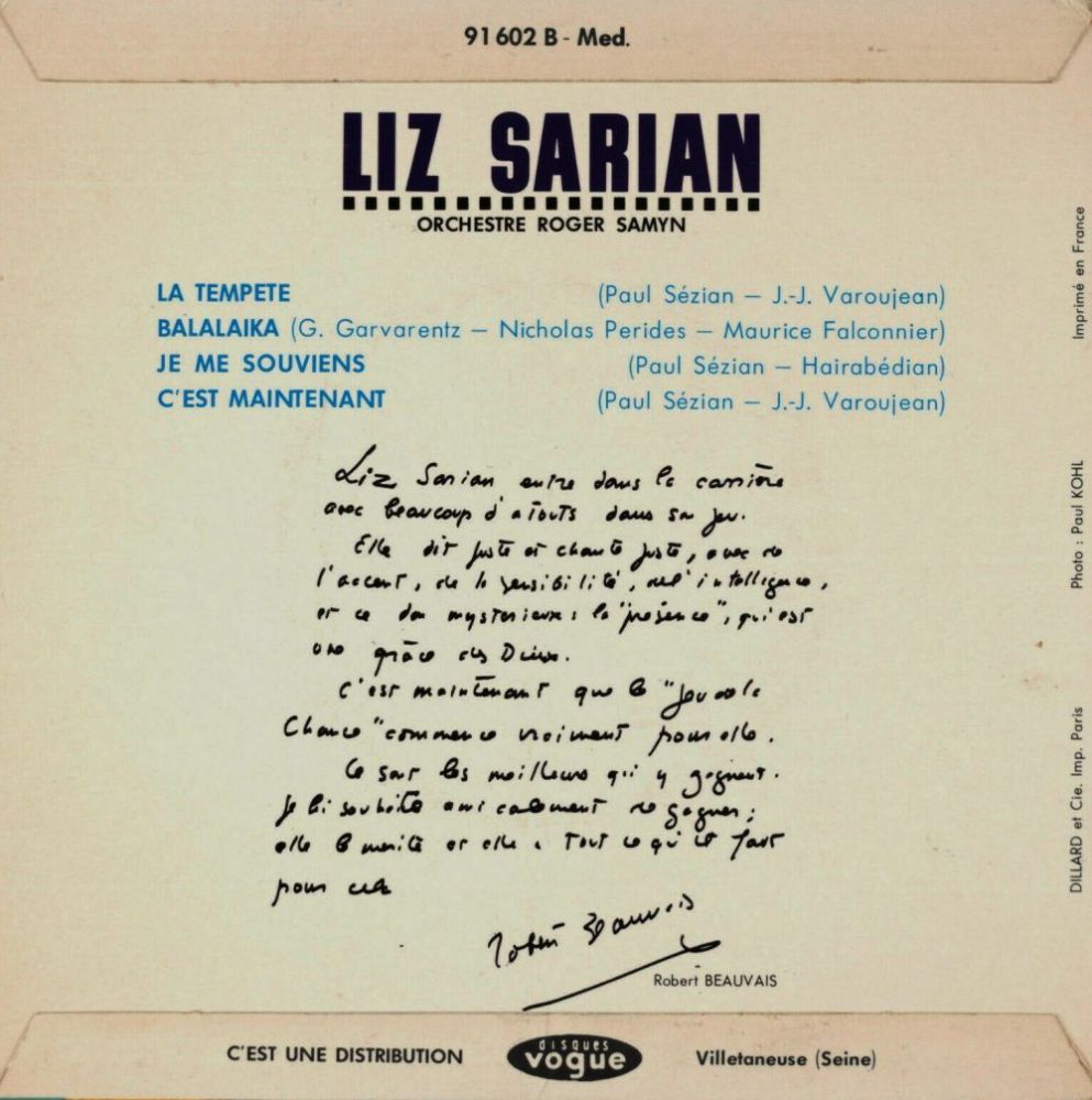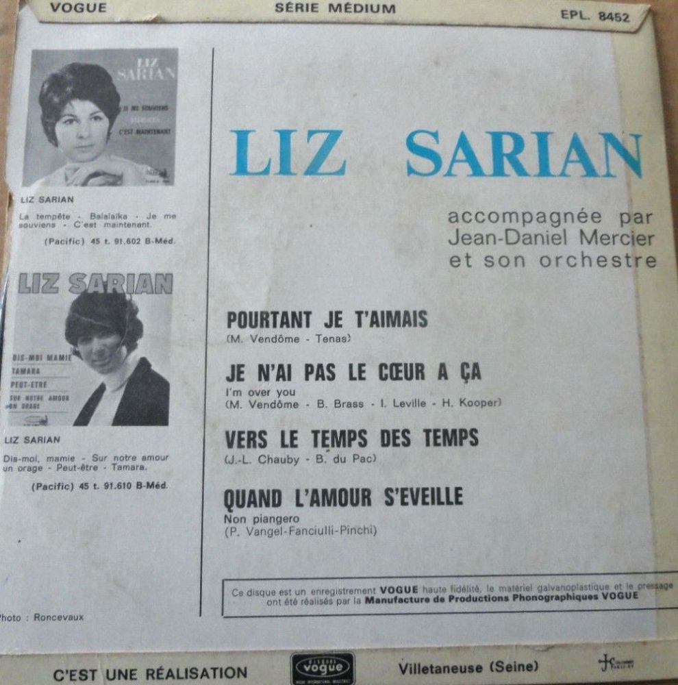 Seit der Mitte der 60er Jahre war LIZ SARIAN in Frankreich ein Star,