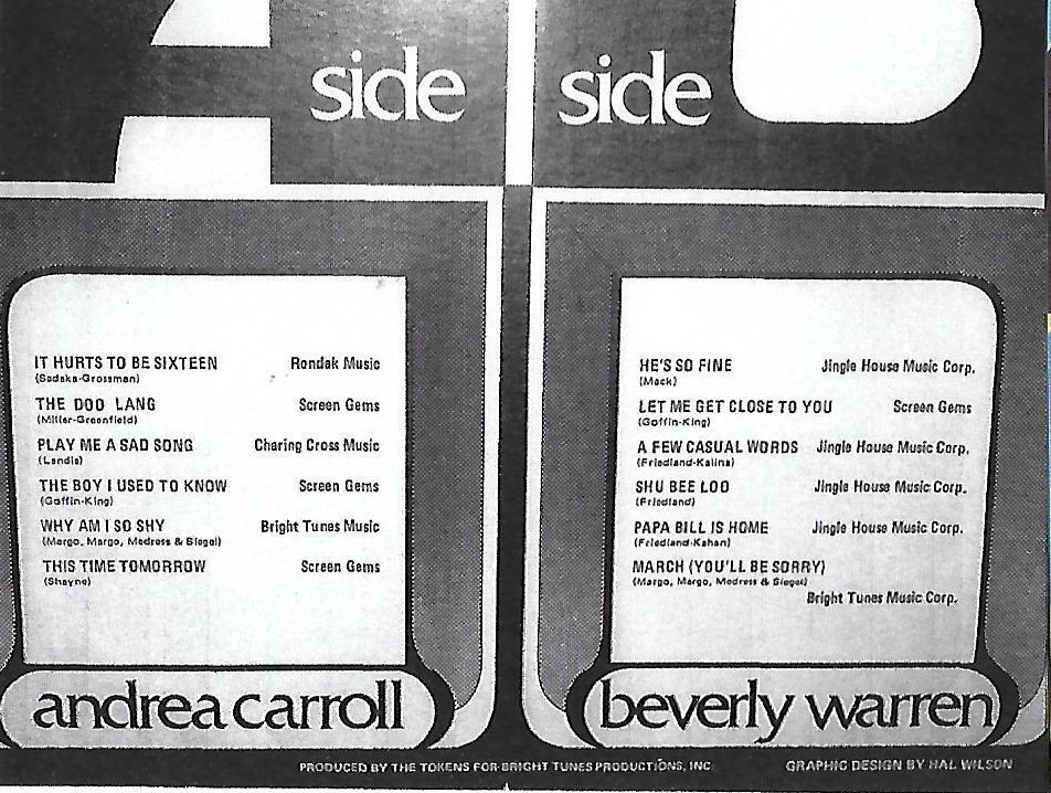 1970 gab es die LP B.T. Puppy 1017 (eine Seite sie, eine Seite ANDREA CARROLL).