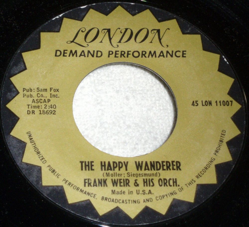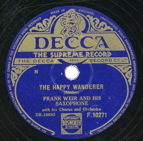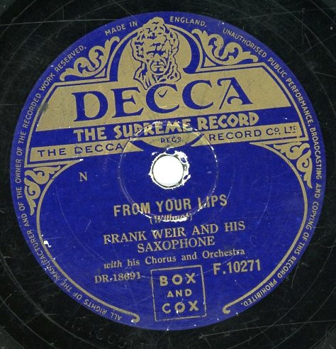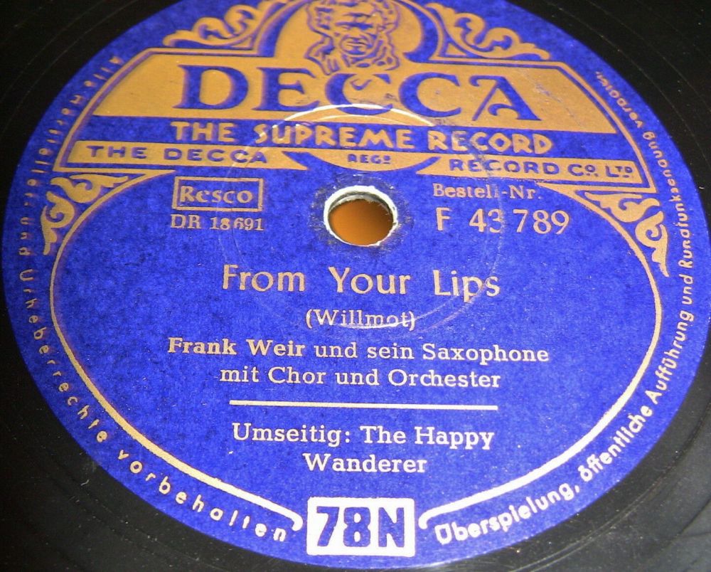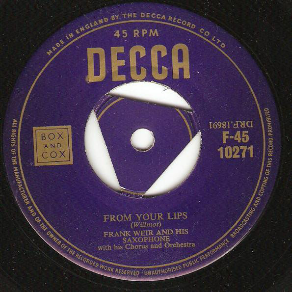 10 54....45-F 10271....FRANK WEIR AND HIS SAXOPHONE with his Chorus and Orchestra..From Your Lips (DRF.18691)/The Happy Wanderer (DRF.18692)