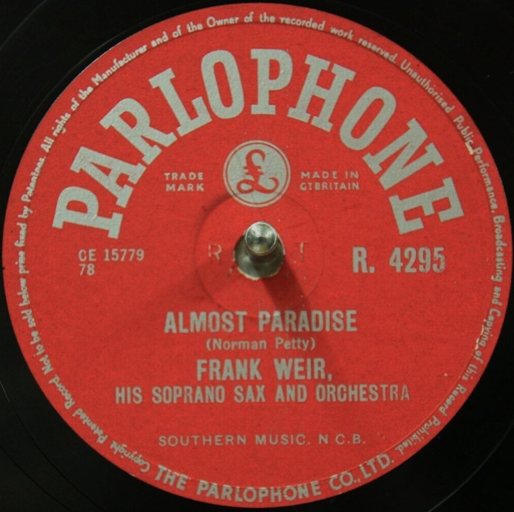 04 57....45-R 4295....FRANK WEIR, HIS SOPRANO SAX AND ORCHESTRA..Almost Paradise (7XCE15779)/FRANK WEIR, HIS SOPRANO SAX, CHORUS AND ORCHESTRA..Calypso Romance (7XCE15780)