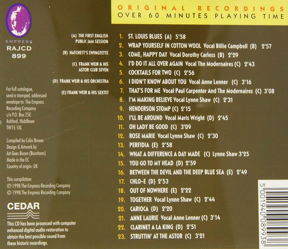 Der Jazz Klarinettist, Saxophonist und Bandleader Frank Weir, als Komponist auch unter Pseudonym Bryan Roger, wurde am 30. Jänner 1911 in London, England, geboren und verstarb am 12. Mai 1981.