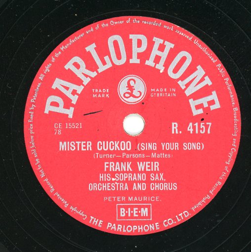 05 56....MSP 6228....FRANK WEIR, HIS SOPRANO SAX, ORCHESTRA AND CHORUS..Mister Cuckoo (Sing your song) (7XCE1471)/If Ever You Go To Paree (Bonjour Paris) (7XCE1472)