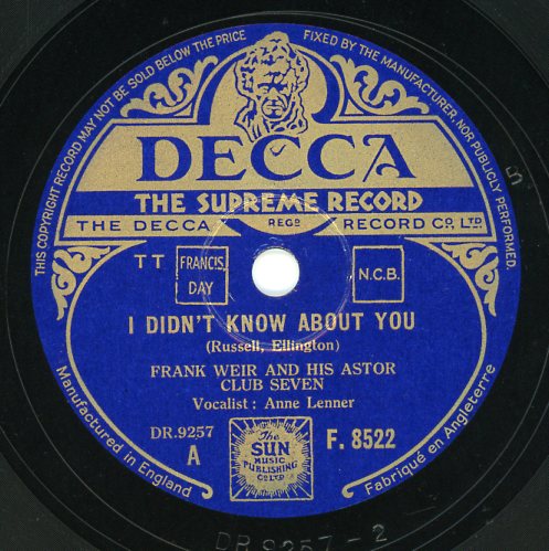11 55....45-F 10646....FRANK WEIR AND HIS SAXOPHONE and his Orchestra featuring Eula Parker..I'm A Little Echo (DRF.21062)/FRANK WEIR AND HIS SAXOPHONE and his Orchestra featuring The Little Tinkers..Castles In The Air (DRF.20525-2)