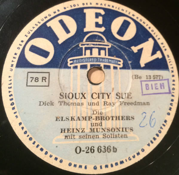Ich lese von einer Schellack auf Odeon O 26636 Home On The Range/Sioux City Sue