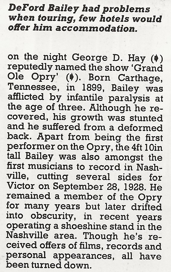 DEFORD BAILEY wurde 1927 als Blues- und Country-Blues-Mann