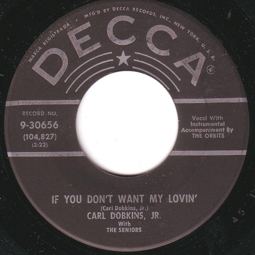 Auch von dem Super-Rocker "Love Is Everything" von Carl Dobkins Jr. gibt es eine deutsche Version. Die Kitty-Sisters (Ernie Bieler mit sich selbst) versuchen es so recht und schlecht, aber, es gibt sie. Die Original-Version gabs auch auf deutscher Pressung mit der Original-Rückseite "If You Don't Want My Lovin'" auf BRUNSWICK 12 134