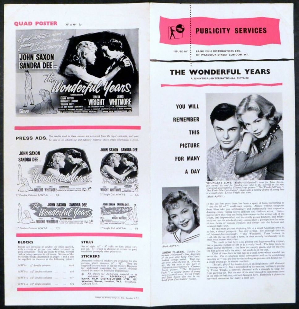 auch 'The Restless Years' (D: 'Zu jung') im Bereich der jungen Filmstars