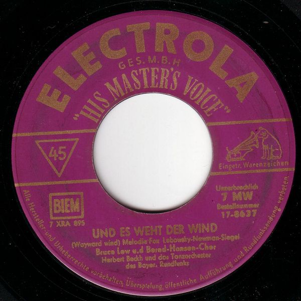 1956 Electrola (u.a. "Wilde Rose Von Arizona"-1956, "Und Es Weht Der Wind"-1956, "Cindy, Oh Cindy", "In Der Sierra Nevada"-1958),