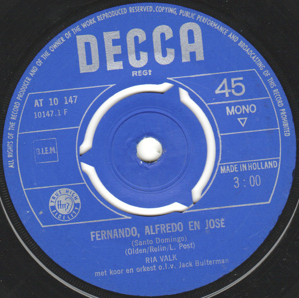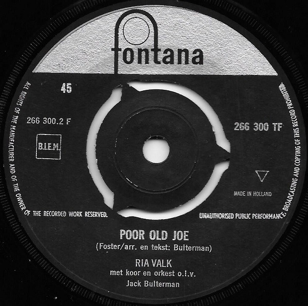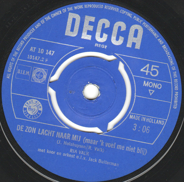 06 62....266 330 TF....RIA VALK met koor en orkest o.l.v. Jack Bulterman..Als de spotvogel fluit (Mockin' bird hill)/Er hangt een paardehoofdstel aan de muur (There's a bridle hanging on the wall)