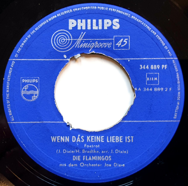 Laut Netz bestand das berliner Quintett "Die Flamingos" aus dem Vokalisten-Ehepaar Sonja Siewert und Herbert Klein, sowie dem Horlan-Trio Horst Lecloux, Akkordeon, Harri Grube, Kontrabass, und Werner Dimski, Gitarre, der bald danach durch den Gitarristen Wolfgang Colly ersetzt wurde. Obwohl es bereits spätestens ab dem Jahre 1955 Flamingos auf PHILIPS gab, soll es die vorher genannte Besetzung angeblich erst ab dem Jahre 1958, also ab AMIGA, gegeben haben, was mich ungemein verwirrt. Waren die PHILIPS-Flamingos vielleich Andere? Es bestand zwar zu dieser Zeit eine Verbindung zwischen AMIGA und PHILIPS, aber im Zusammenhang mit den Flamingos definitiv erst im Jahre 1959, da das Original von "Gitarren klingen leise durch die Nacht", wo die Flamingos mitwirkten, auch von PHILIPS übernommen wurde, was aber für die Klärung der Identität nicht ausreicht. Ich denke hier an Heino mit der Hoffnung, dass er mit Hilfe seiner Aufzeichnungen etwas Klärung schaffen könnte. Siehe dazu Bericht #8 von Heino!!!